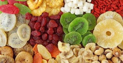 Buah-buahan yang telah melalui proses pengeringan, seperti kismis atau aprikot kering, memiliki kandungan serat yang tinggi. Namun, cara pengolahannya telah membuat kadar air dalam buah ini sangat sedikit. Akibatnya, jumlah kalori dalam buah ini menjadi lebih besar. Sekitar seperempat cangkir buah-buahan kering itu bisa memiliki 100 kalori, sementara rasanya yang enak sering membuat orang bisa makan dalam jumlah banyak. Biasakan untuk makan secukupnya, atau campurkan dengan salad. Dengan begitu, Anda tidak akan makan secara berlebihan.
