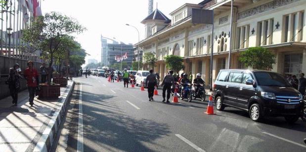 Lalu lintas di depan Gedung Merdeka, Bandung, mulai direkayasa untuk menyambut kedatangan Presiden Susilo Bambang Yudhoyono, Kamis (30/8/2012). Bandung (News Today) - Lalu lintas di depan Gedung Merdeka, Bandung, mulai direkayasa untuk menyambut kedatangan Presiden Susilo Bambang Yudhoyono, Kamis (30/8/2012). Presiden dijadwalkan mengunjungi gedung ini untuk menghadiri acara Hari Kebangkitan Teknologi Nasional.